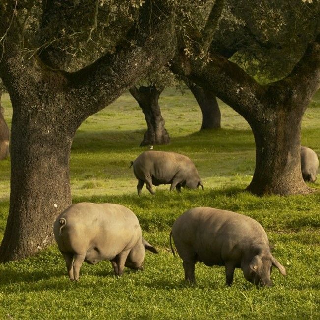 来自西班牙的JOSELITO“小何赛”一直秉承家族创办人于十九世纪创立的火腿制作传统。至今,我们制作火腿的方法依旧崇尚自然,和昔日毫无区别:选用在天然生态环境下自由生长的黑毛猪,配以传统的腌制方法,严格监控制作过程,我们保证每一支火腿都是品质优秀,健康营养,不负众望。 选取成年黑毛猪的后腿,在坐骨-耻骨联合部位切分,包含整个后腿的骨头和肌肉组织。而后进行适当腌制和熟成。火腿在最后封装前剔骨。